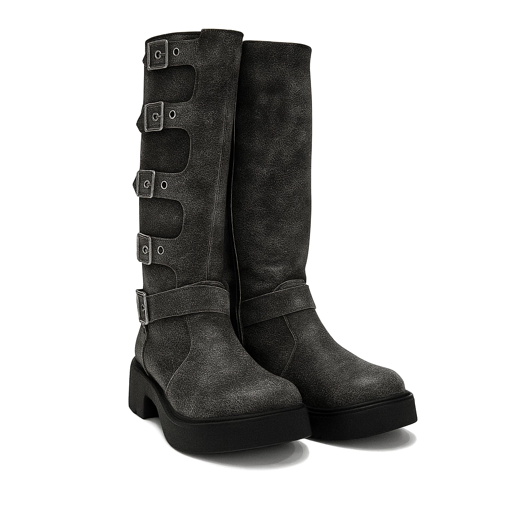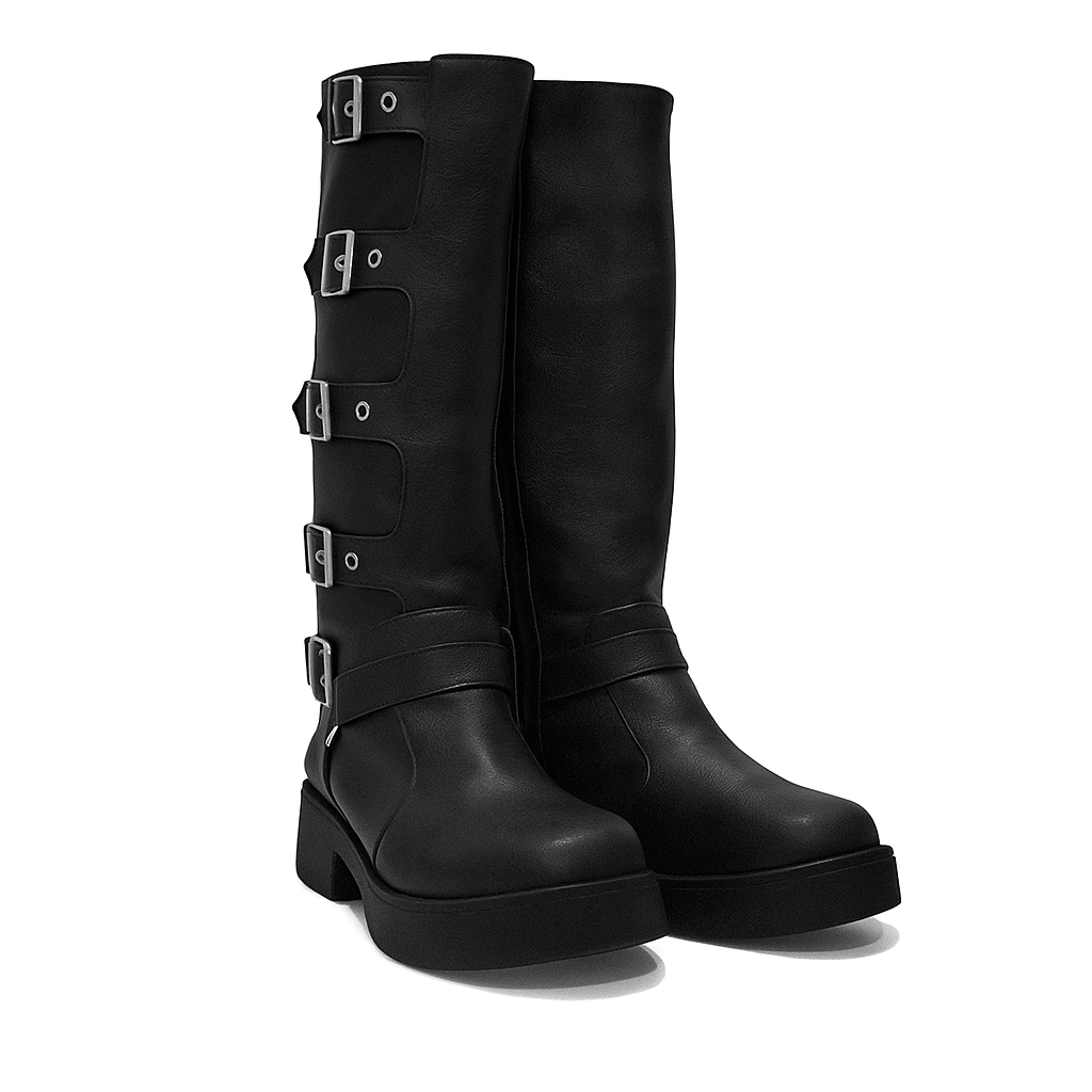 Borcego de caña alta con 5 hebillas y base de goma con taco de 3,5 cm