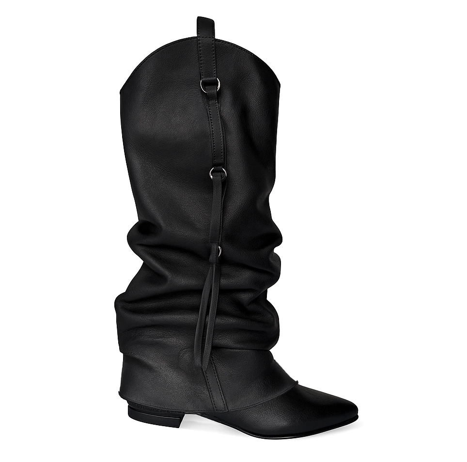 Bota en punta, caña con capa alta arrugada y taco de 5,5 cm