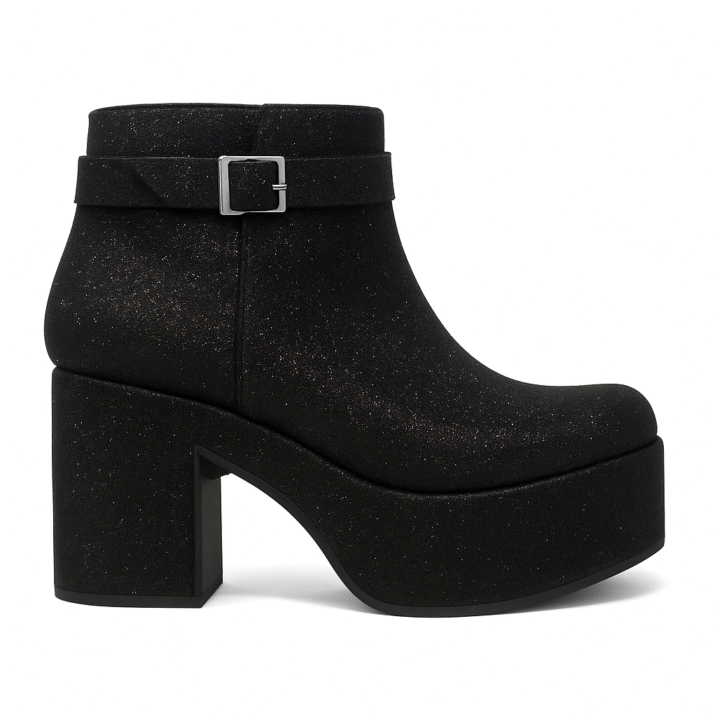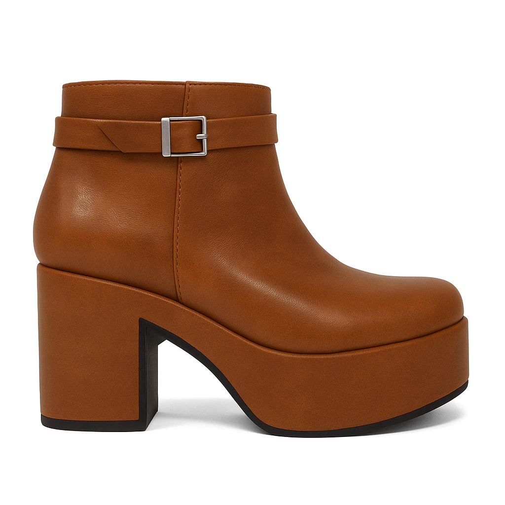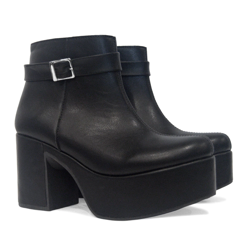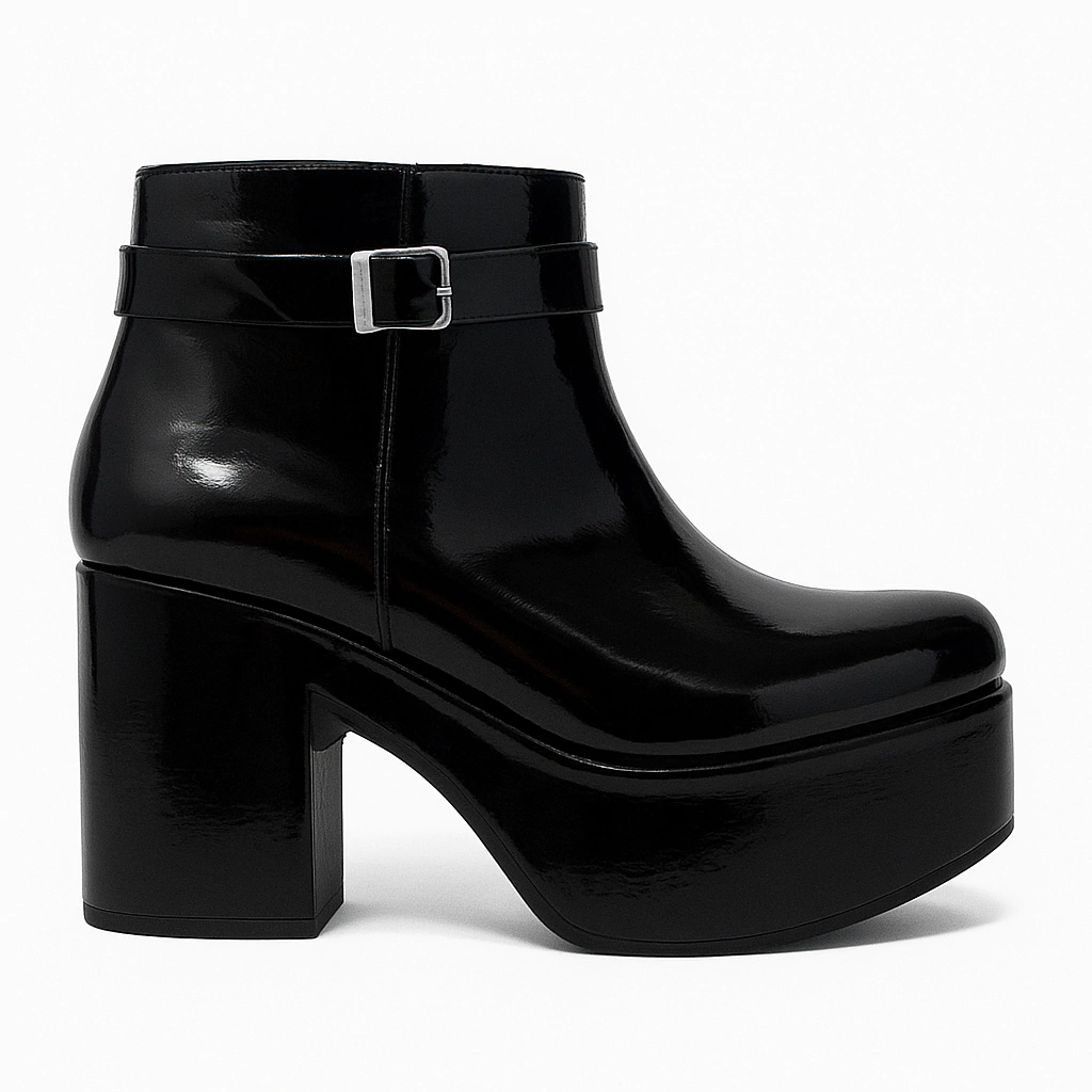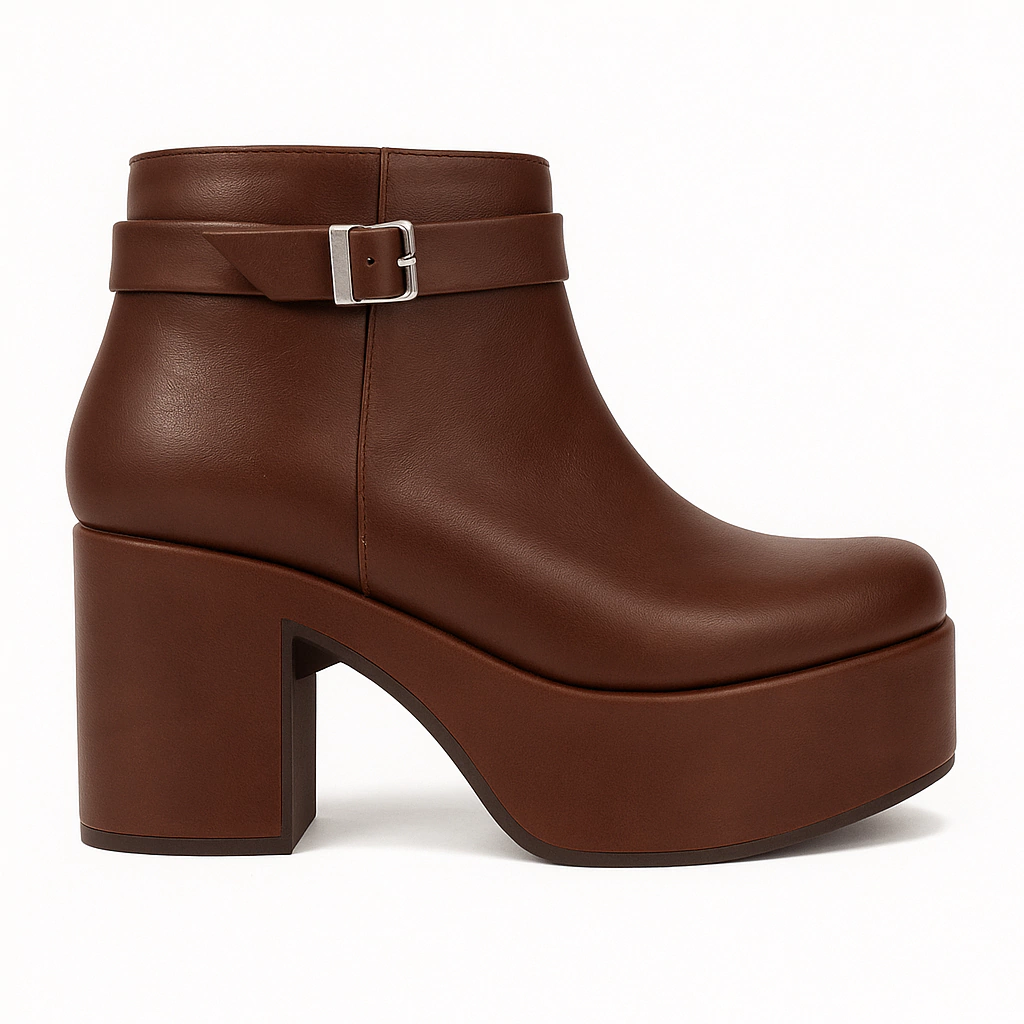 Bota con punta redonda, tira con hebilla, plataforma de 5,5 cm y taco de 10,5 cm