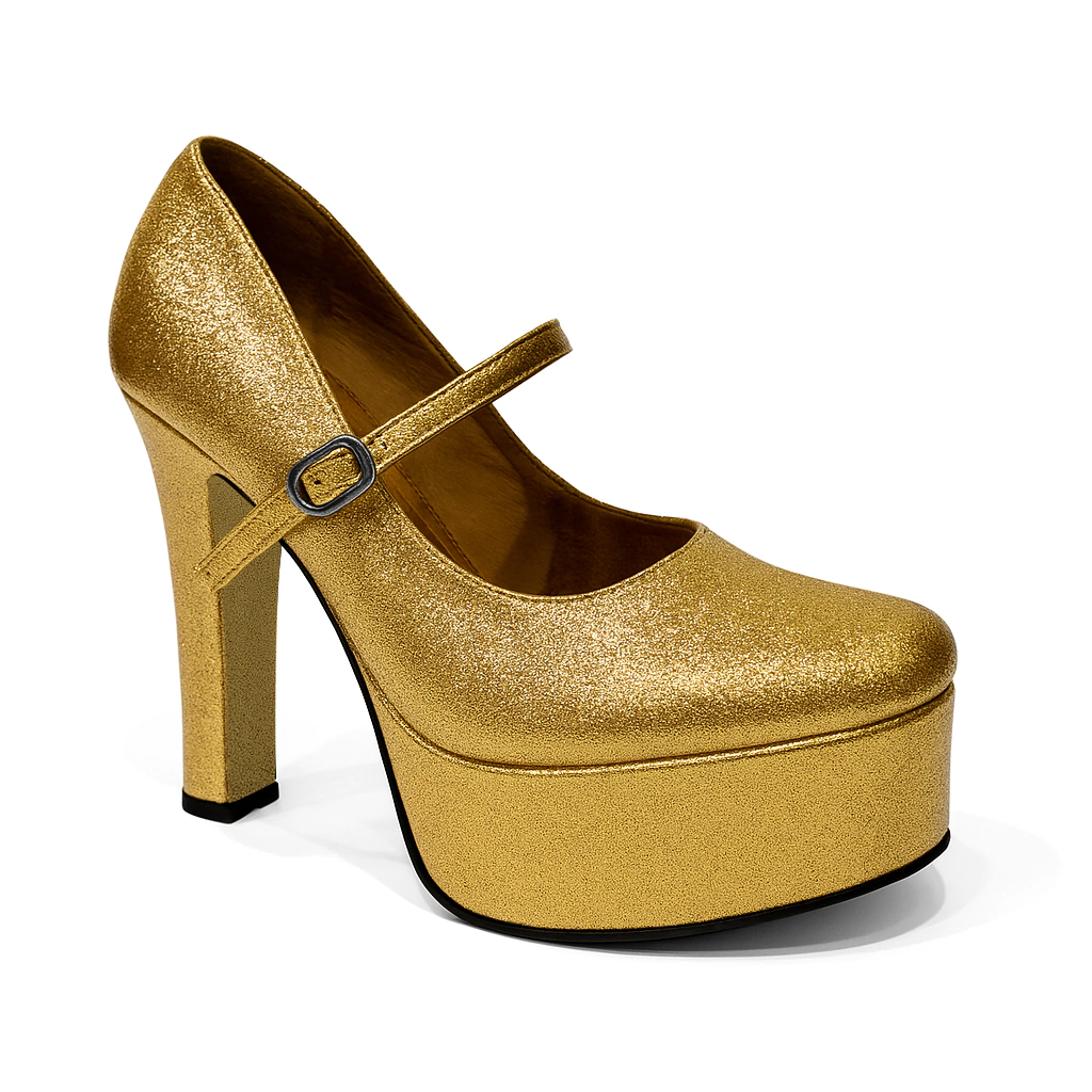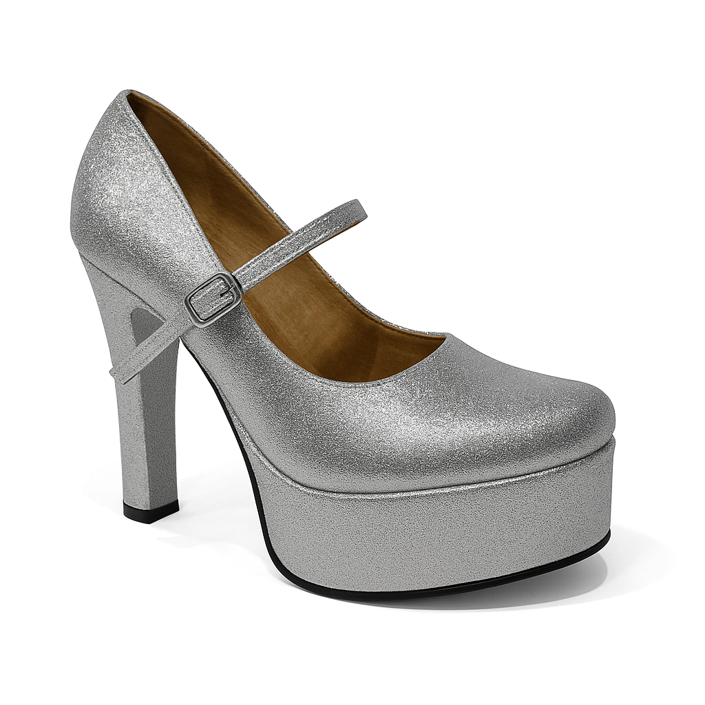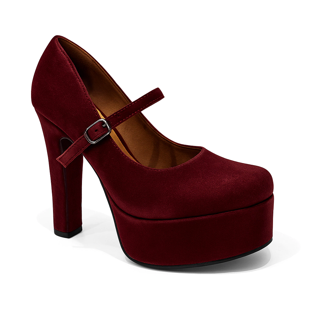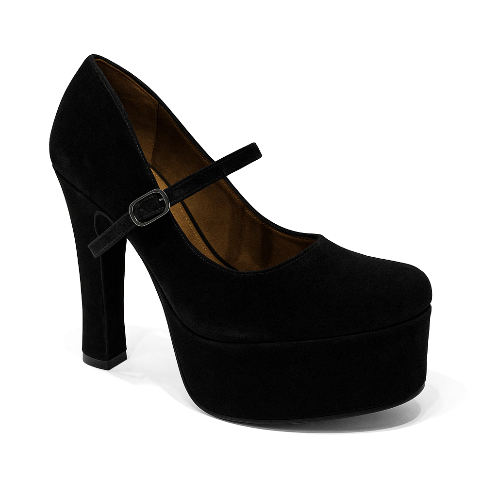 Zapato clásico liso con punta redonda, tira que sujeta el pie con hebilla, plataforma de 3,5 cm y taco lxv (luis 15) de 10,5cm